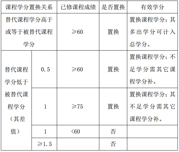 ⑴置换课程学分高于或等于被替代课程学分或相差0.5学分的;